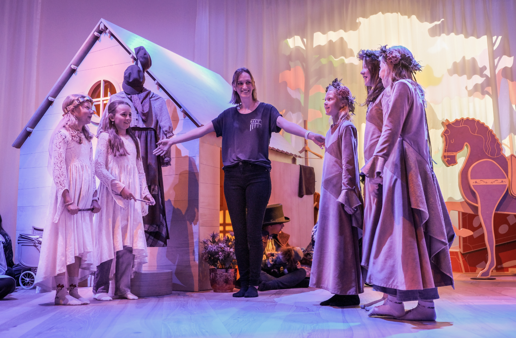 Her vælger man sin egen rolle, ifører sig kostumer og bliver en aktiv del af fortællingen. Formidleren guider undervejs og hjælper med både handling og replikker, så alle kan være med - uanset alder.